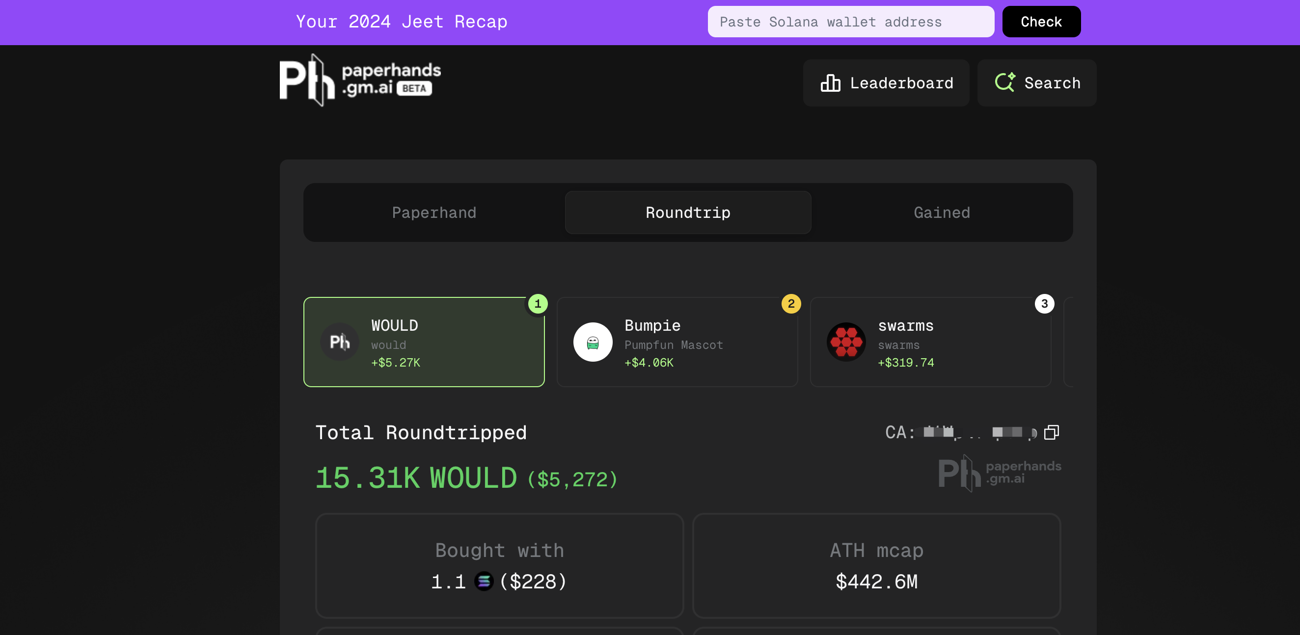 检查你是不是纸手,输入钱包地址就可以查询你卖飞了多少钱,我是WOULD、Bumpie和swarms